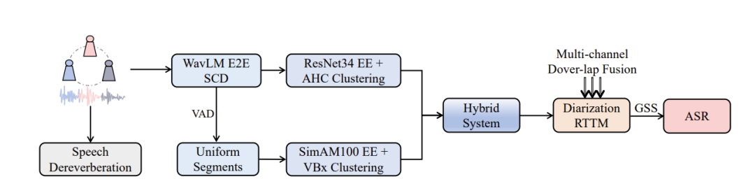 针对MISP 2025挑战赛,远鉴提出了一整套高效且创新的解决方案。在语音分离方面,采用结合WavLM端到端分割与传统多模块聚类的混合方法,能够自适应处理不同程度的语音重叠;在自动语音识别(ASR)方面,创新性地提出基于ASR感知的观察添加方法,有效弥补了低信噪比下引导源分离(GSS)的性能局限。通过以上提出的创新性方法,远鉴在赛道2和赛道3中均排名第一,充分彰显了该方案在真实会议场景下的卓越性能与技术领先优势。