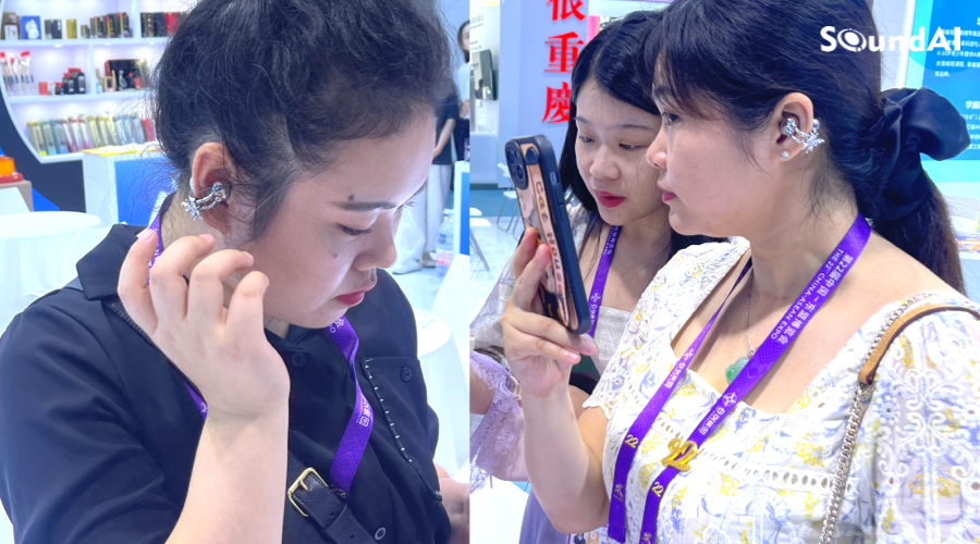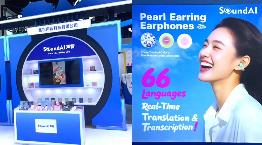 声智科技在此次东博会上展示了其完整的“AI+声学”产品矩阵,包括AI珠宝耳机、AI助听器等多款创新产品。这些产品融合了声智科技的核心声学技术,搭载自研AI声学大模型,集成了66种语言实时互译、AI语音转文字、AI声音克隆、AI猫语狗语翻译等多项声学AI功能,特别适合多元文化的东盟市场。