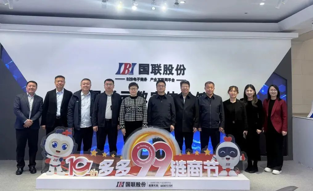来访一行首先参观了国联股份数字经济展厅,深入了解了国联股份基于"平台、科技、数据"战略所构建的多多平台运营模式,以及在产业带跨境运营策略、国联云技术应用与实践等方面的最新进展。