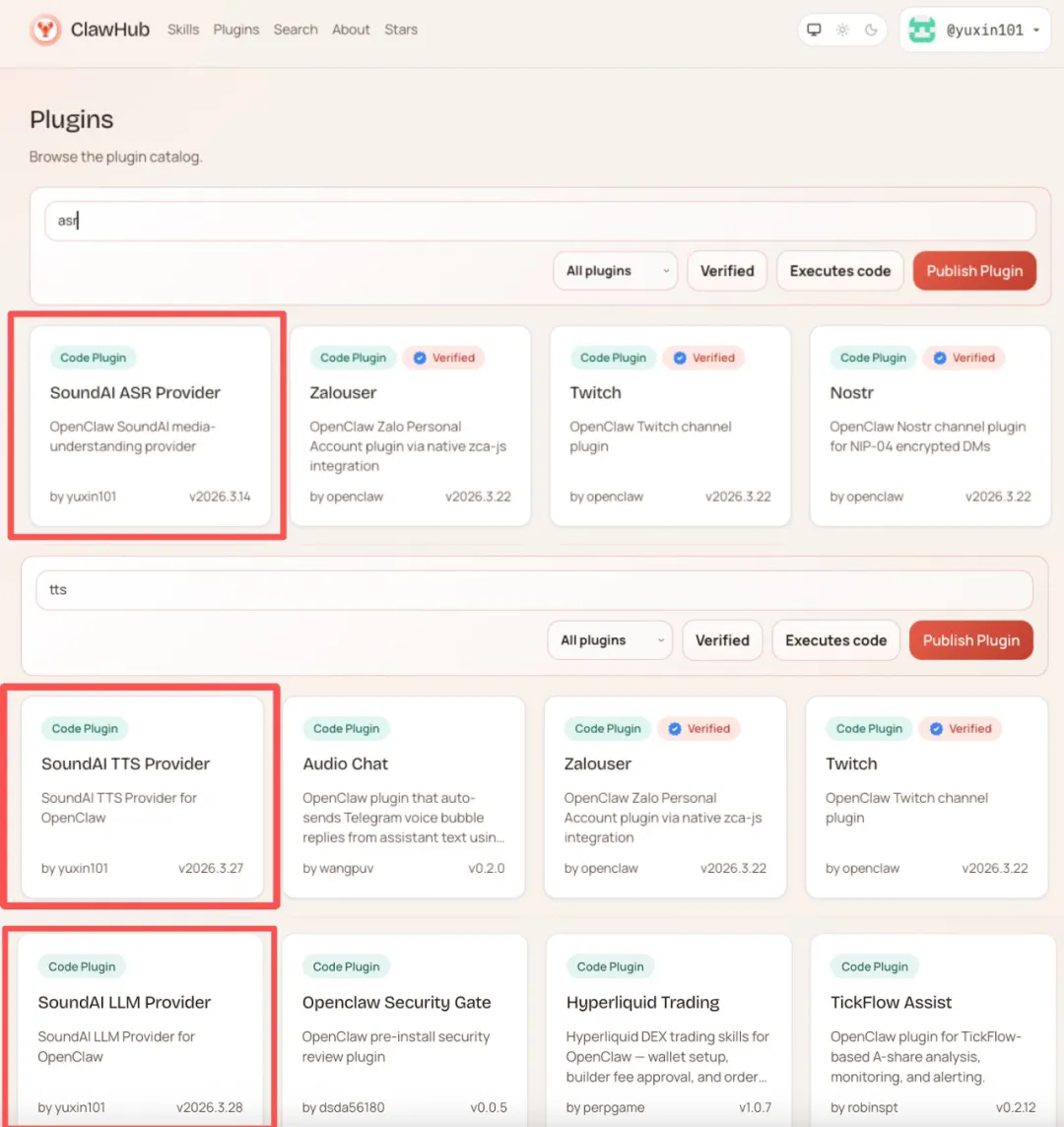 近日,声智科技自主研发的语音交互插件,包含ASR(自动语音识别)与TTS(语音合成)正式通过ClawHub官方审核并接入服务;与此同时,声智自研的LLM(大语言模型)插件也已成功接入OpenClaw(龙虾)官方插件生态。