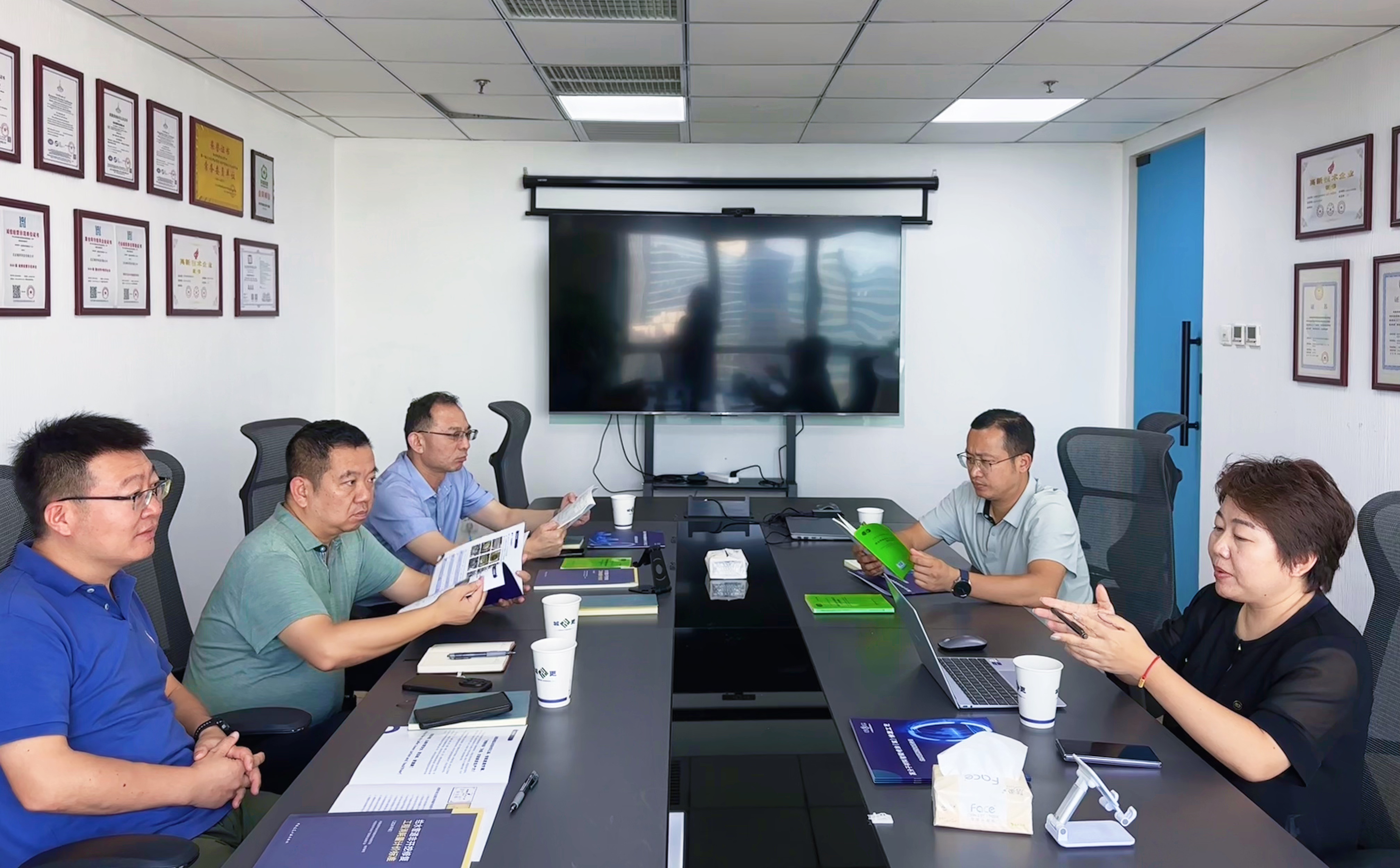 商会秘书处办公室主任王猛、会员部张人洁,会员企业时石资本合伙人訾宏达,城更科技董事长邵海波携相关团队2人参加本次座谈交流。