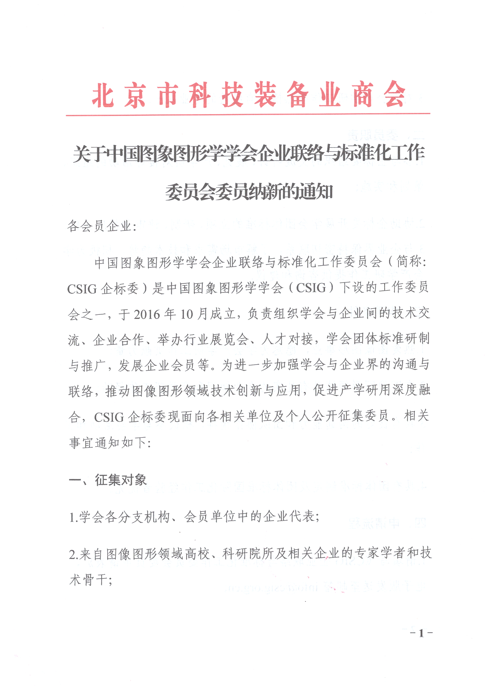 关于中国图象图形学学会企业联络与标准化工作委员会委员纳新的通知