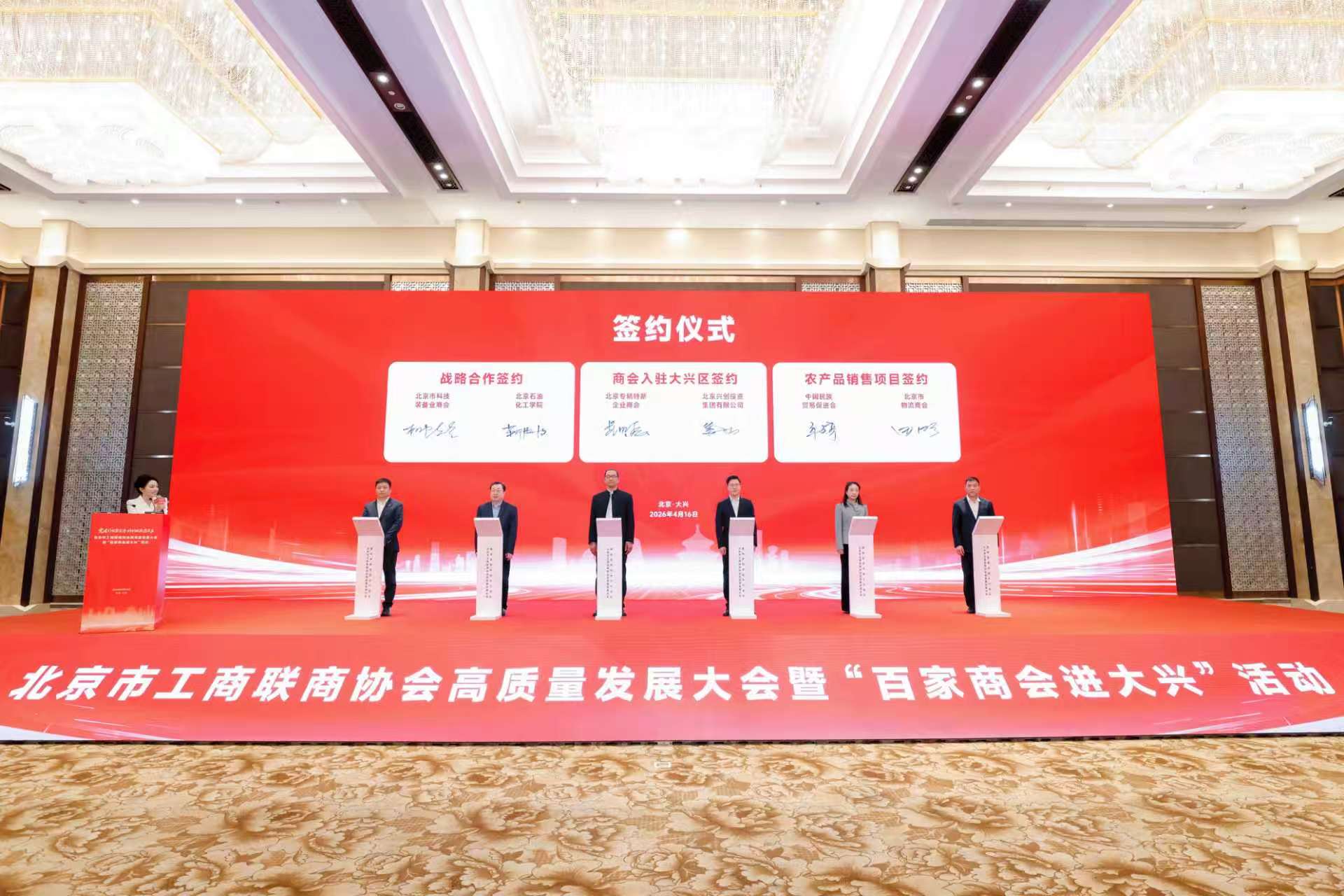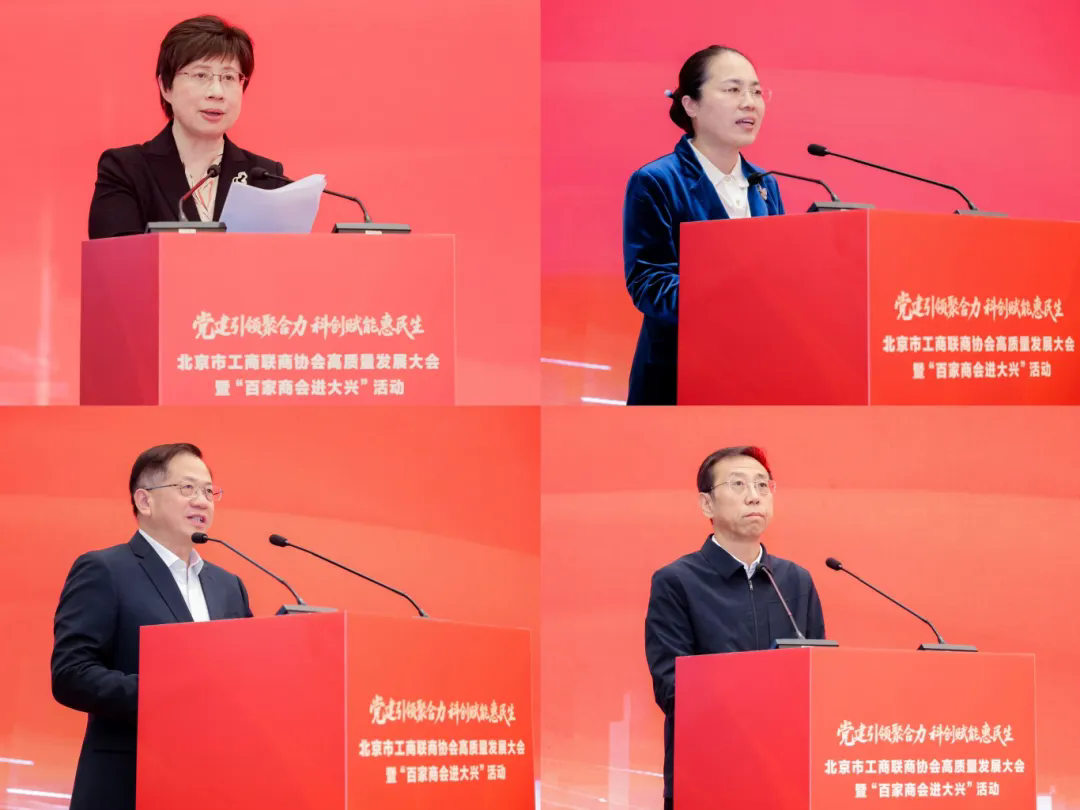 2026年4月16日,市工商联与大兴区人民政府共同举办商协会高质量发展大会暨“百家商会进大兴”活动。市政协副主席、市工商联主席燕瑛出席会议并讲话。市委统战部副部长、市工商联党组书记严卫群,市委社会工作部副部长、一级巡视员卢建出席会议并致辞。全国工商联商会发展服务中心主任、全国工商联直属商会综合党委副书记张一卫,中共北京市大兴区委书记初军威,政协北京市大兴区委员会党组书记、主席禹学垠,市工商联党组成员、副主席杨靖国,大兴区委常委、统战部部长蔡小军,市民政局二级巡视员柴珠峰,北京石油化工学院靳海波副院长等领导出席会议。