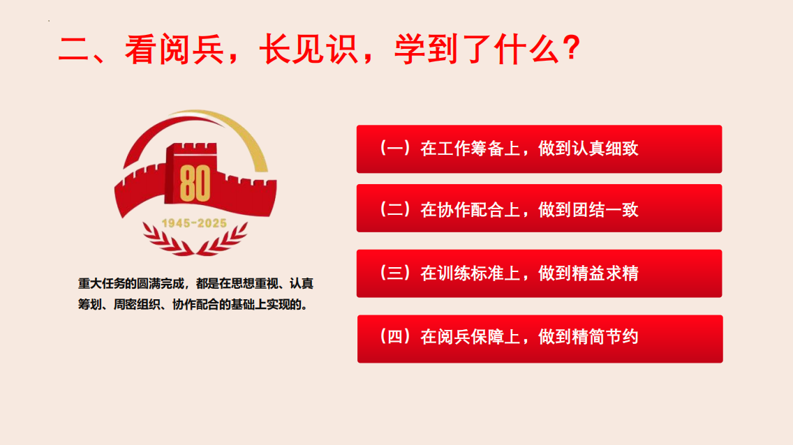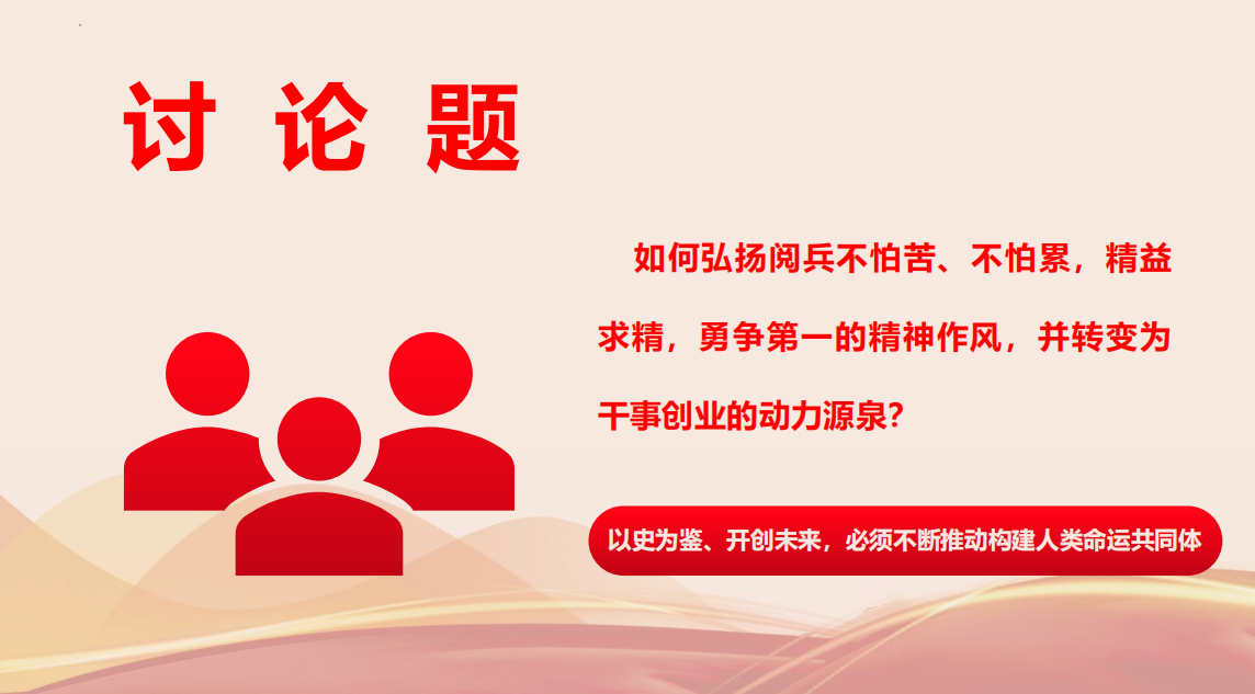 党课结束后,党支部及部分企业代表以“如何弘扬阅兵不怕苦、不怕累,精益求精,勇争第一的精神作风,并转变为干事创业的动力源泉”为题,结合九三阅兵、党课内容和自身工作,进行深入交流讨论。