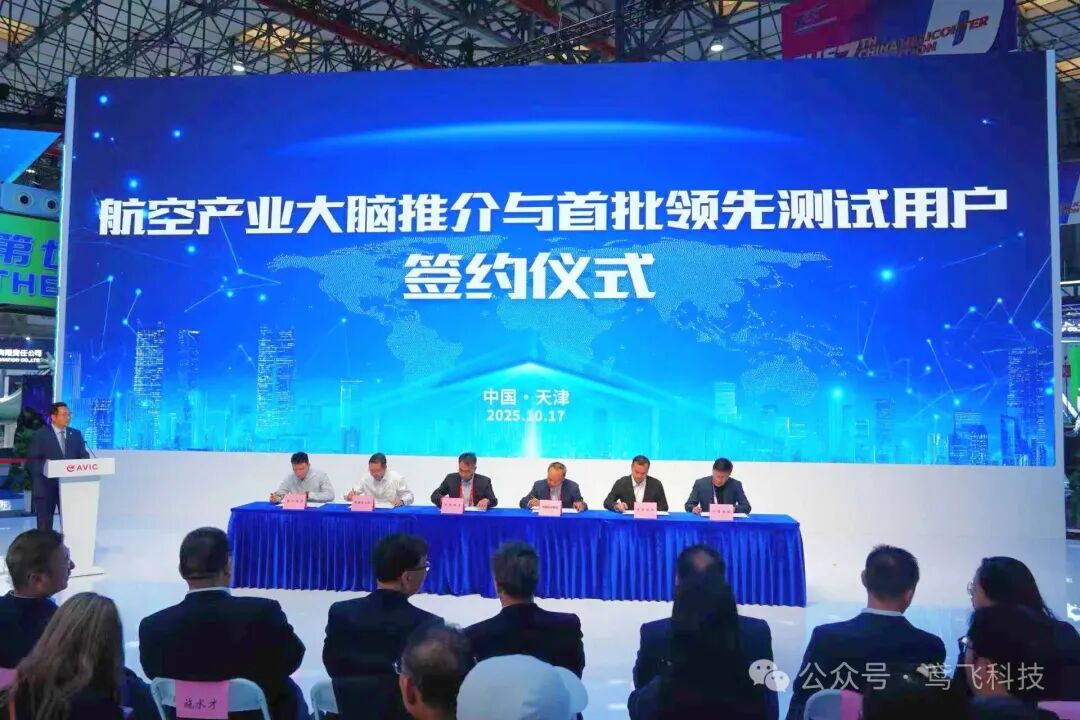 10月17日上午,航空产业大脑与智媒技术创新系列签约活动在第七届天津直博会航空工业集团展台发布区举行,中航文化有限公司携手多家合作伙伴,共签署三项合作协议,标志着以先进技术赋能媒体智能化升级,以智媒技术赋能低空经济发展迈出了具有探索意义的一步。
