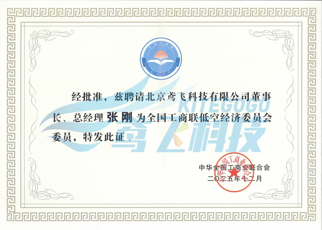 会上宣读了《关于成立全国工商联低空经济委员会的决定》,北京鸢飞科技有限公司董事长张刚被聘请为全国工商联低空经济委员会委员,并授发了委员证书。