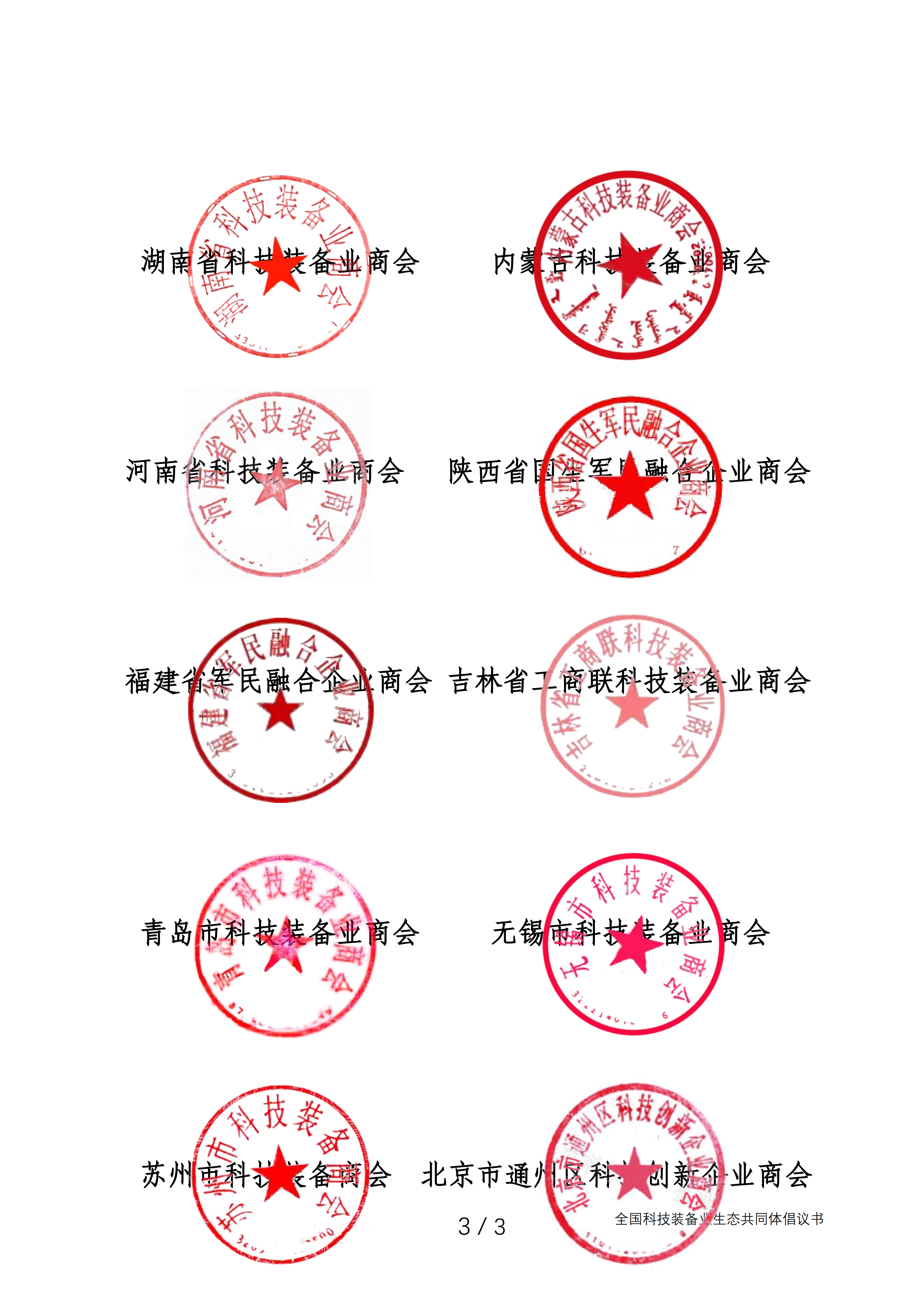 二、同意由我会牵头,会同其他省市商会共16家建立的《全国科技装备业生态共同体》。