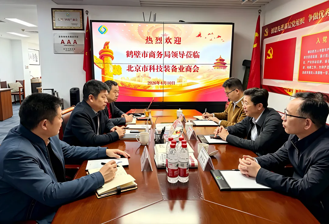 4月10日,河南省鹤壁市商务局二级调研员、京津招商组组长岳岩、干部史战宾,北京创客家园信息科技服务有限公司董事长秦素贤一行到访北京市科技装备业商会座谈交流。商会会长柳培虎、秘书长徐晋及秘书处成员参加交流。